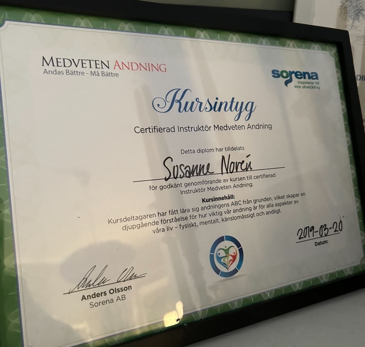 Min bakgrund med diplomerade utbildningar sedan många år tillbaka vilar bland annat i den kinesiska medicinen, den medvetna andningen, medicinsk yoga för kvinnan och mindfulness, medveten närvaro i vardagen och som Holistisk Coach